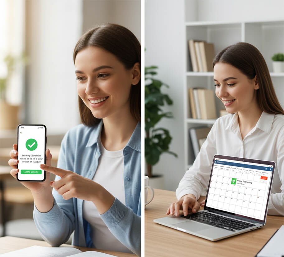 Let your clients book appointments anytime, whether it’s early morning or late at night. No more waiting for your business to open or missing calls during busy hours. Your calendar stays active and slots keep filling effortlessly.